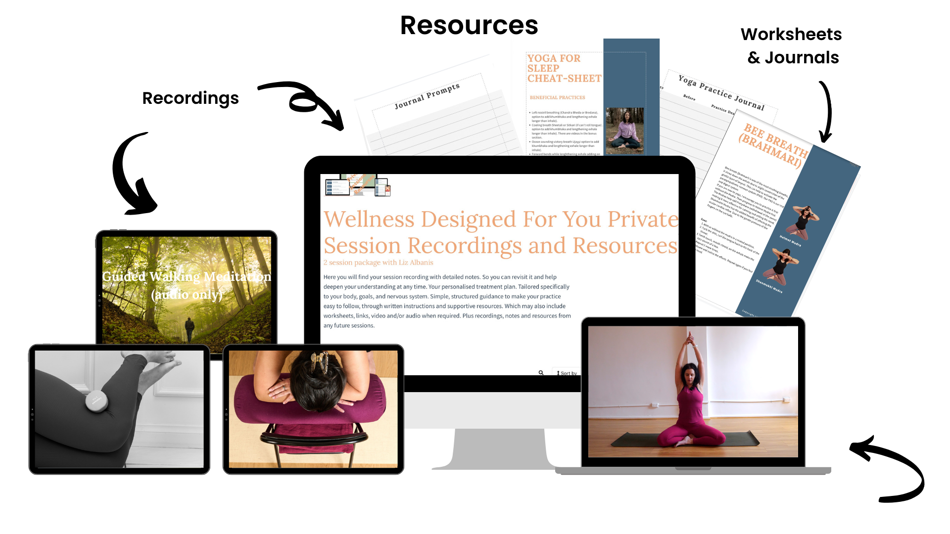 After the second session, your full set of personalised resources will be uploaded to your private Kajabi portal, including your session recording, notes, and guided materials.